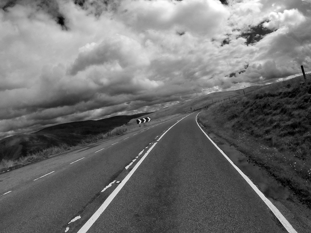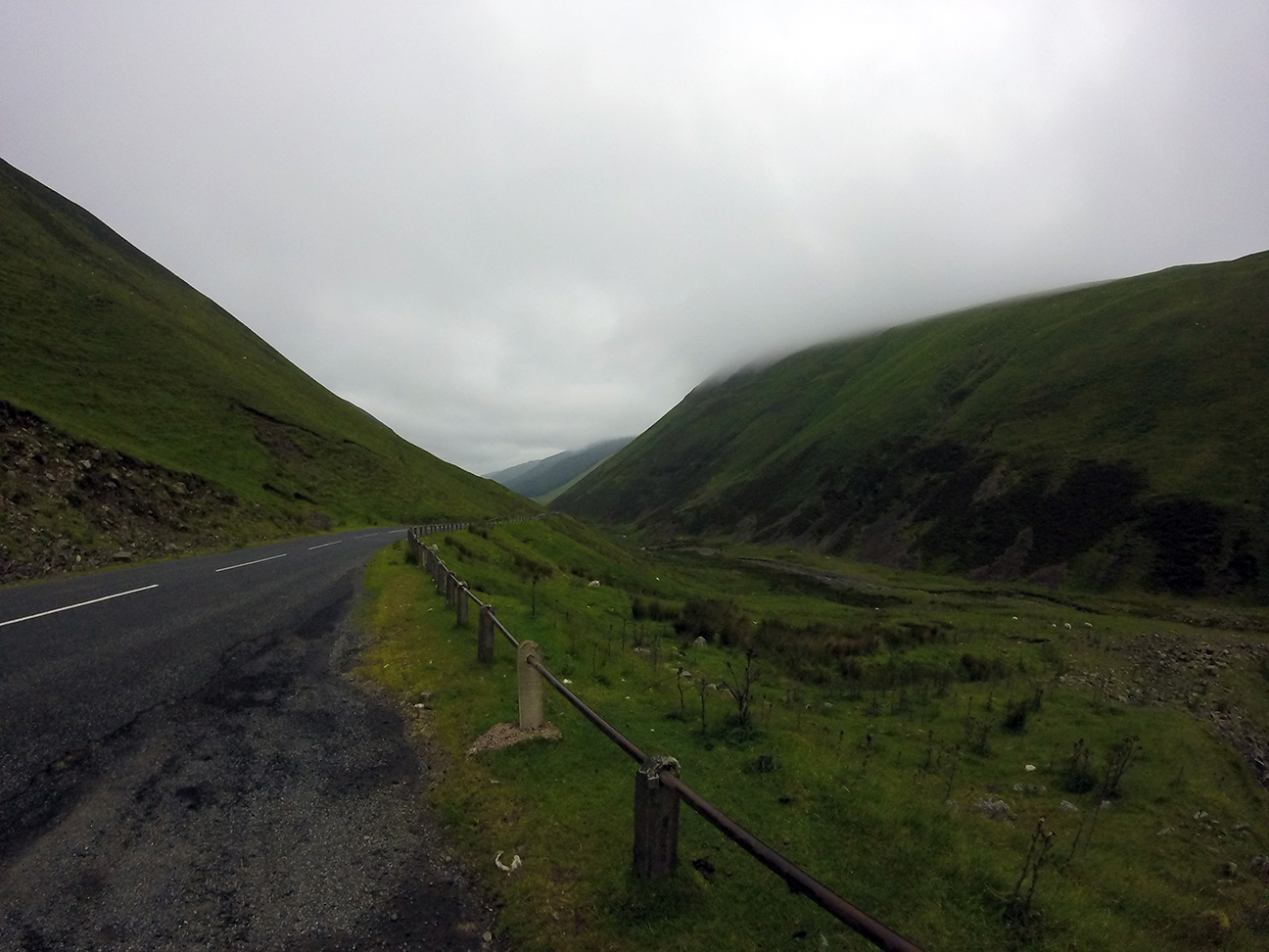 Riding this stretch of the A701 really was a childhood dream come true. So often had I been driven (and latterly driven myself) up here and imagined bicycle adventures…I spent too long at university in St Andrews and home was just off this road some 10 miles south of Moffat, but I could never have entertained such long distance riding then. The first section was a bit unpleasant but after that I just settled in a lowish gear and took it easy, plodding away. The weather was nice at the top. It isn’t always of course; somewhere up here is a memorial to two postal workers who died after being caught in a blizzard.