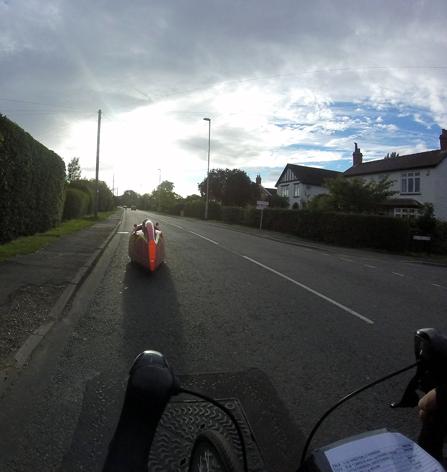After some horrible road surfaces coming into Edinburgh the route took a cycle path where I followed one of the Elliptigo gang; I could see why he was wearing a helmet – all those overhanging branches. I was happy to see Raj leaving the control just as I arrived, he seemed be going well. Osian was here too and we ended up riding a bit of the next section together. Trikin’ Dave was on the desk when I checked in which was great as I’d hoped to see him, although we only had time for a few words. I tried to find him later before I left, but I think this coincided with him going out on a rescue mission for a rider who was down in the horrible rain.
