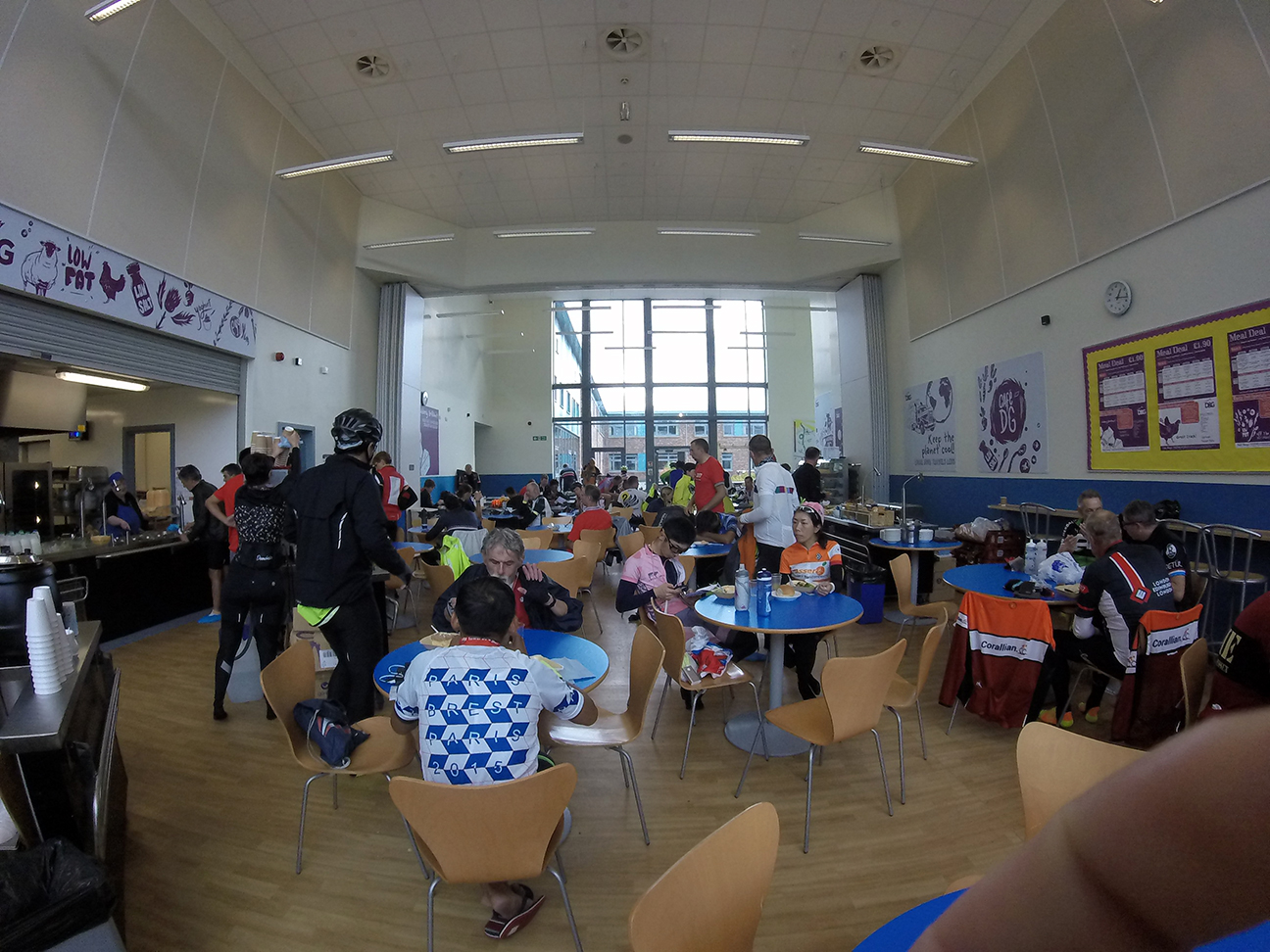I had a shower and a change of clothes from my drop bag; I probably spent too long here but a shower really does make you feel human again. I hadn’t thought about the changing rooms which were the typical UK school set-up which means no privacy; why are they like this when the rest of life isn’t? Happily under these circumstances I think most people would be a bit preoccupied with their own thoughts.