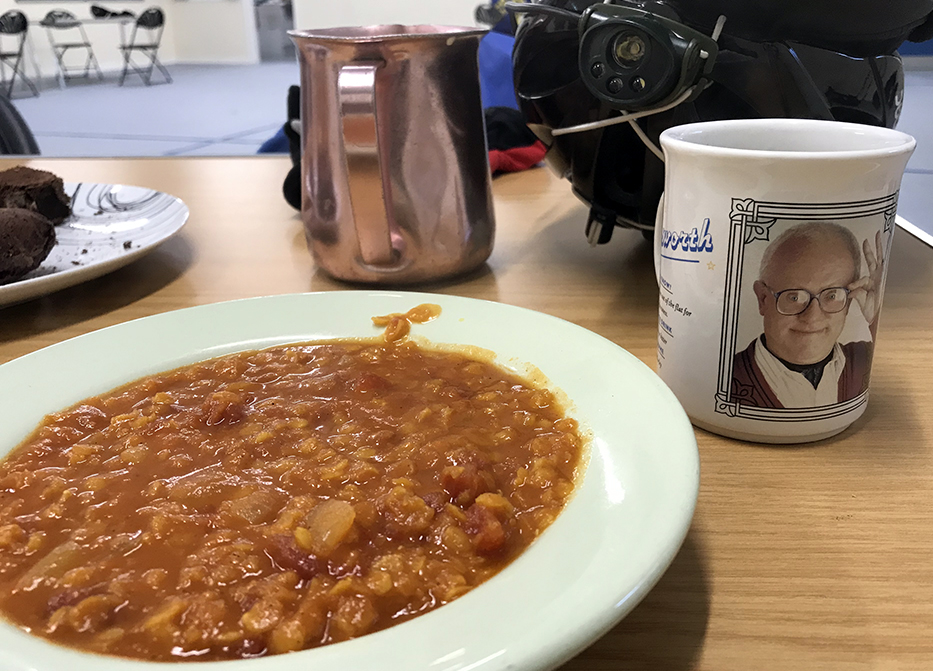 Definitely possible to consume more calories than used on this ride; there were some very tempting morsels (and nice coffee) at the start, and one control was a chippy (although I opted to go elsewhere, I know I feel crap if I eat too much en route). Then at the finish there was amazingly a three course menu, which again I didn’t manage to sample all of, but the bits of Dean’s cooking and baking I had were splendid.