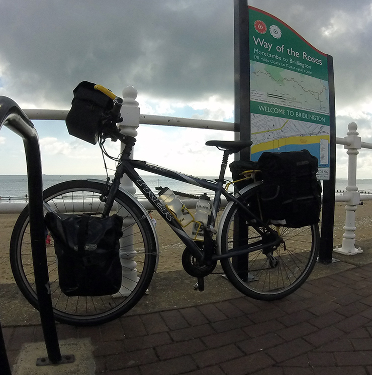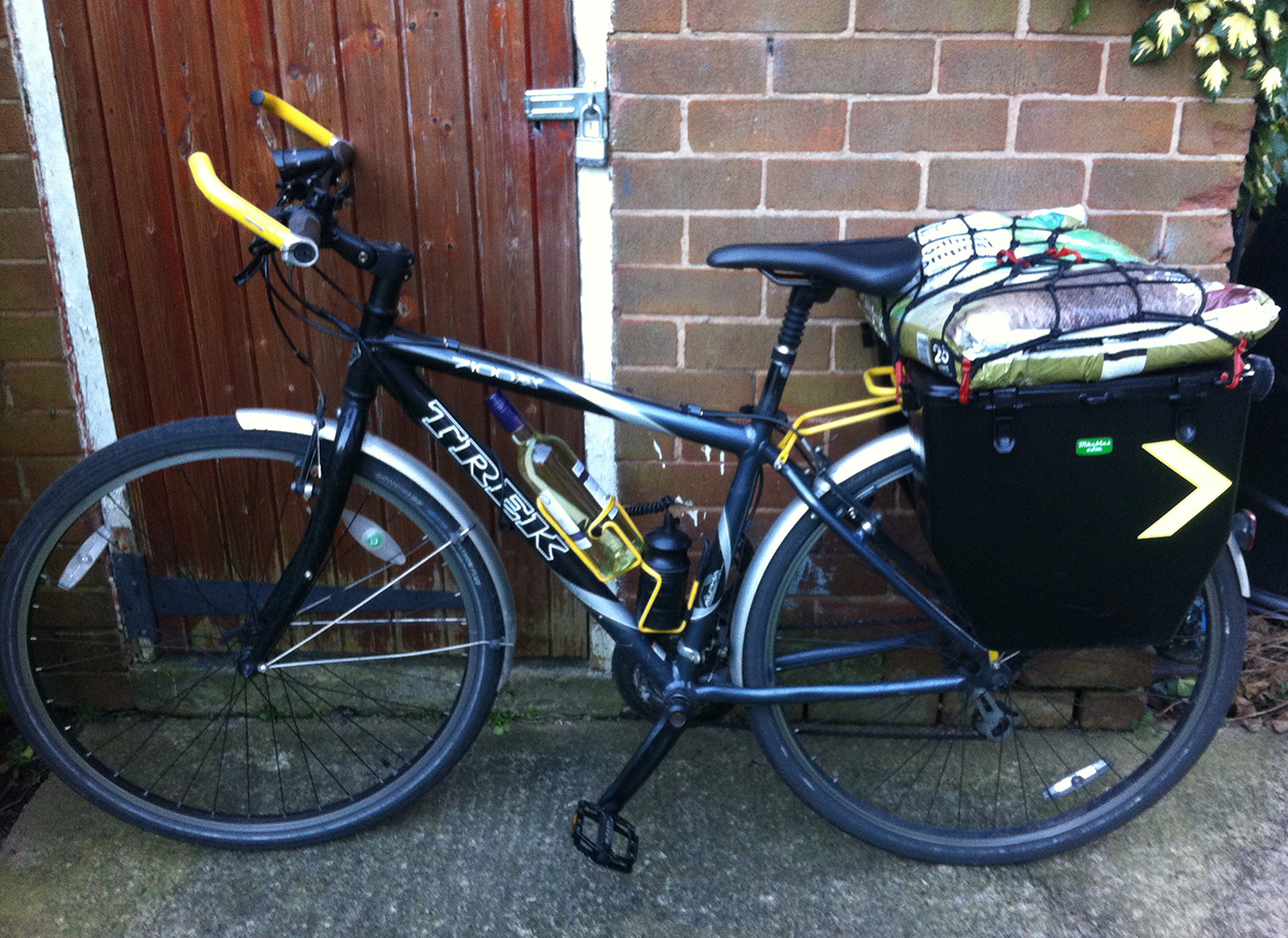 This was my first ‘proper new’ bike, as in I did some research before buying it. I remember having a test ride and thinking how much more nimble it felt than the Purple thing. I got it in Exeter when I had my first job, it was about £370 including mudguards, rear rack and panniers. I’m still using the rack and panniers now. I didn’t know much about bikes then so it was just that, a bike. It did mostly commuting duties, but also a few longer rides and pub trips (and oh, the best pubs). It spent a while in my parents’ barn until I had use for it and space to keep it again. I used it for about a year, again commuting, from the northern reaches of Leighton Buzzard to Milton Keynes; this was about half on tow paths and I learned to love Schwable Marathons. I resurrected it when living in Coventry and doing my first tour – to Lands End (well when I set out all I knew was that I was headed to a campsite in Taunton for a few days and that after that I had a couple of weeks of leave). When I moved to Leeds I stopped using my Brompton for commuting and started using this again.