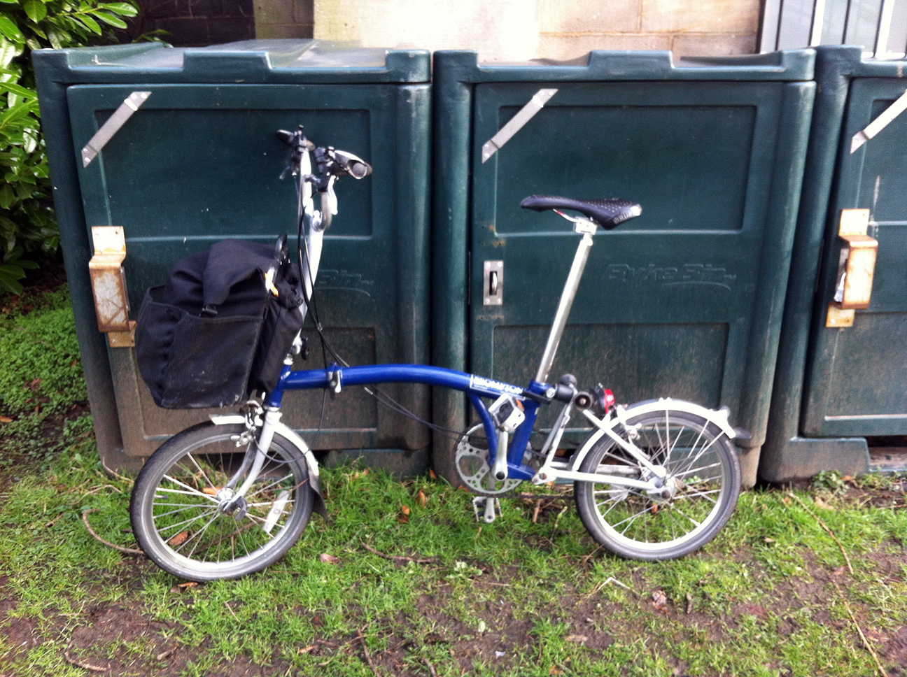 I was able to justify buying this when living in a flat with little storage, and I’d also had a small redundancy payment. It got heavy use when I was working in Coventry, first when I was train commuting from Nuneaton and later in a house where ‘proper’ bikes had to live upstairs and I’d soon tire of carrying one up and down everyday. Since moving to Leeds it’s only had occasional use but I’d never get rid of it, it’s so handy; recently it’s been on a canal boat trip, on the train to Bradford a few times, and as an emergency spare when my commuter was nicked. Feels really odd to ride now that I’m not used to it.