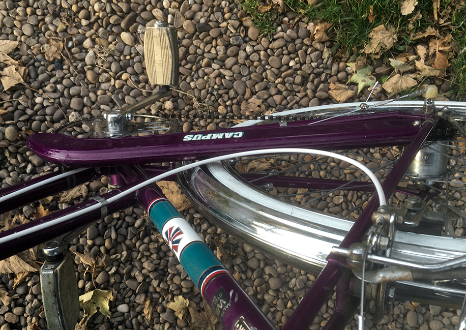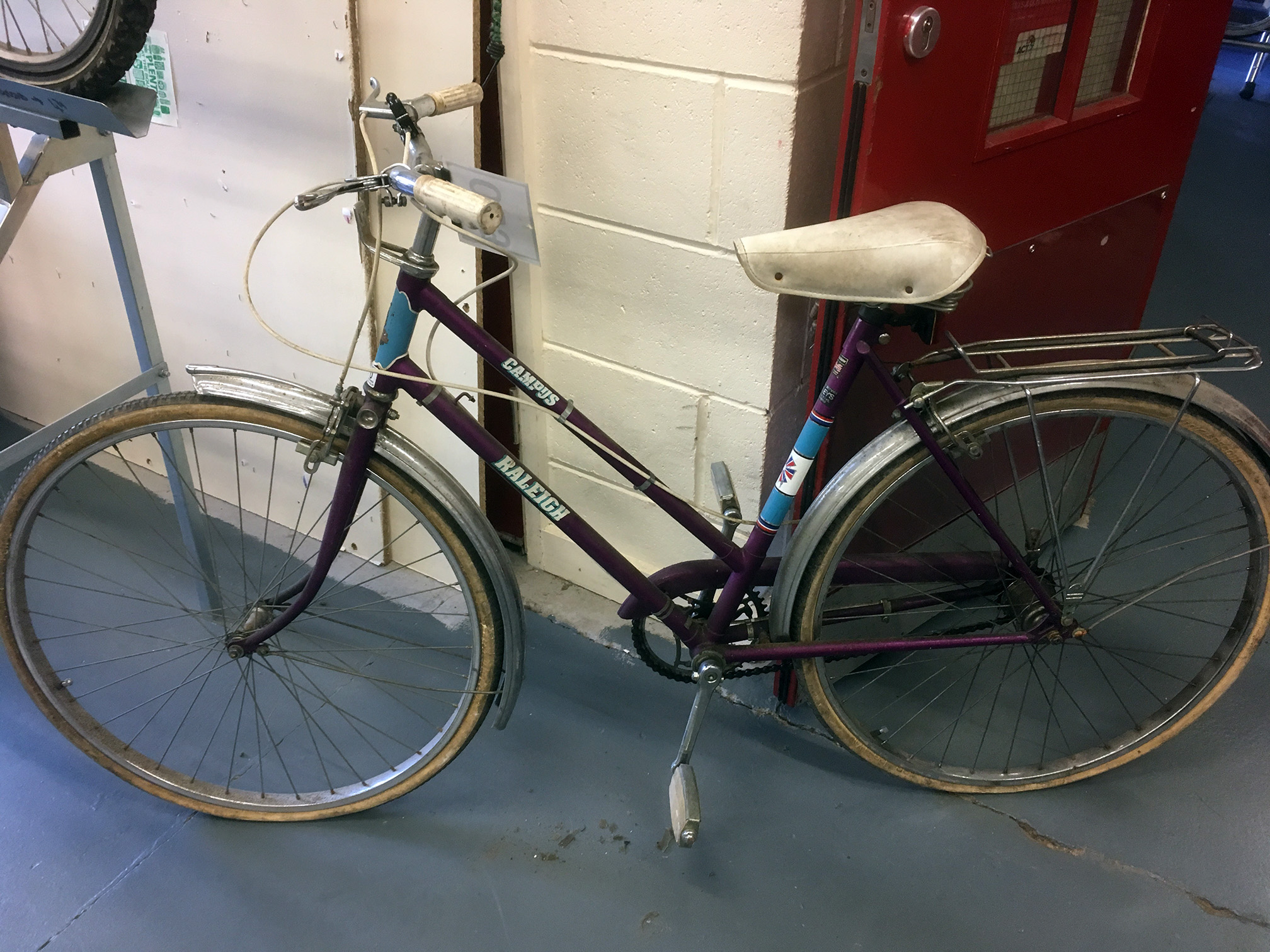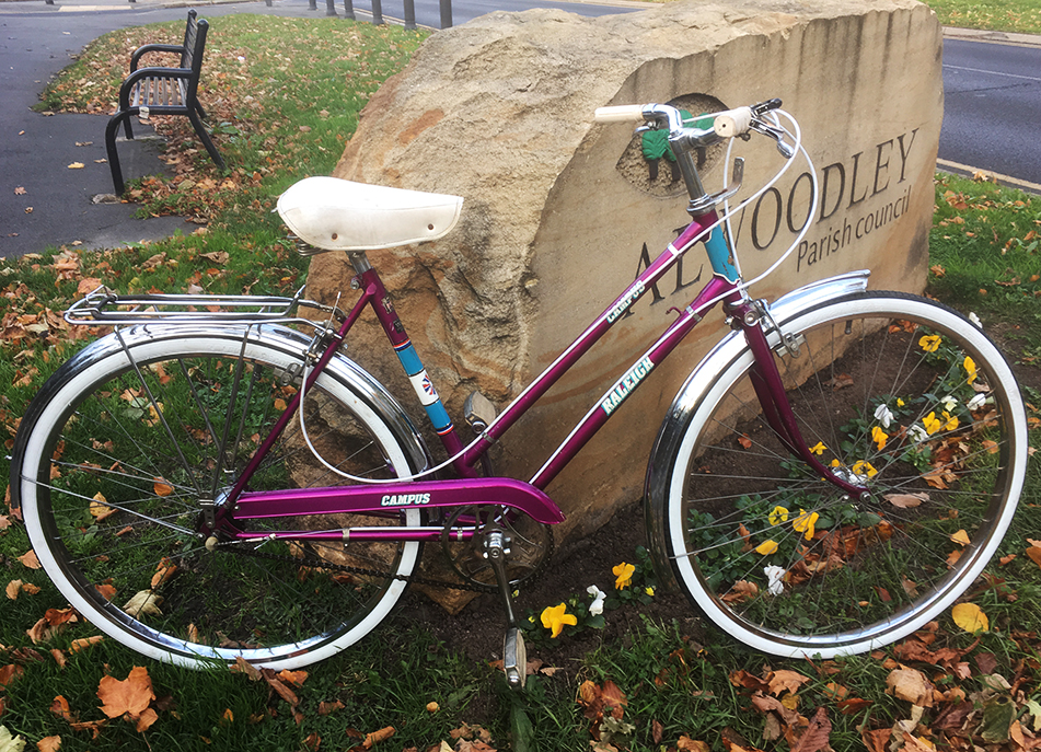 Current status: fitted new Raleigh Record tyres, serviced front hub and headset. Removed cotter pins (vice required) and crankset. New cables. Rear hub working but would probably benefit from a service. Have been for a circuit of the local roads, I love the riding position but I don’t think I could go too far on this saddle.
