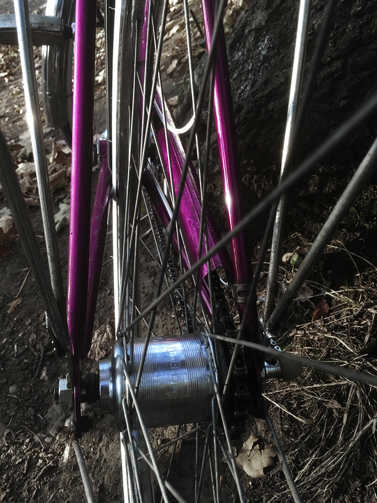 Thought I’d try fixed a few years ago, and also fancied building a bike for the first time. Fixed scared me too much so I dismantled it and failed to sell the parts. The wheels became the faster ones for the Hewitt. There doesn’t seem to be a market for the frames (someone else was trying to sell one on yacf without interest, and that was a more popular size) so I decided to resurrect it, with the plan to encourage the frame to take a hub gear.