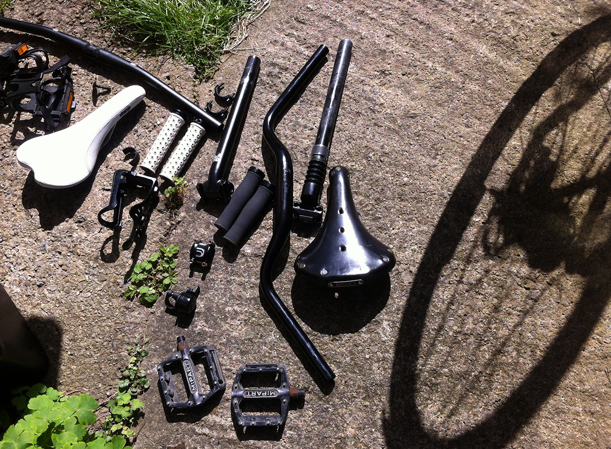 Current status: one day I parked it, with a decent cable lock, outside WHSmith while I popped into Cycle Surgery for a few minutes. When I came out it had disappeared, leaving no trace. I reported it and scoured eBay and Gumtree for a while; it was unique with the bits I had changed plus I had the frame number. But no luck, and after I investigating I didn’t think it was worth claiming on my home insurance.