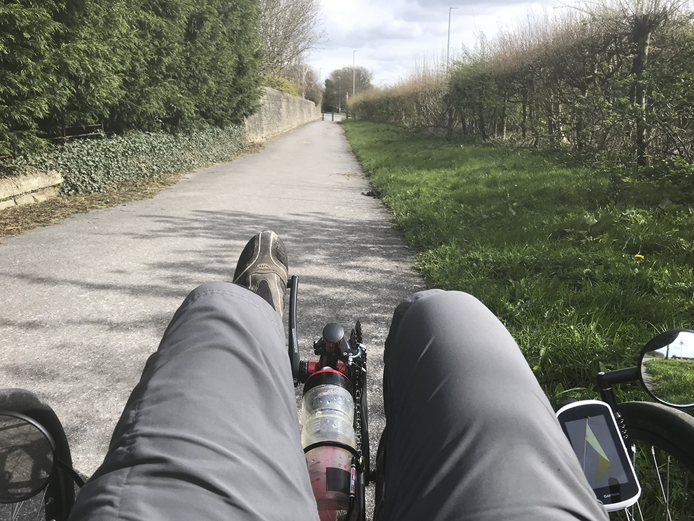 Thoughts: I need lower gears; I used the lowest one several times, and never touched the largest chain ring. I can see why people have suspension. Potholes could be a lot more serious than on a two wheeler as they are more difficult to avoid; I am learning to keep the small front wheels out of them, and know where the rear wheel is. Constant gear changing is needed; too high a cadence causes unpleasant wobbling, too low is obviously difficult. I love the bar end shifters, although might turn off the indexing on the rear. It is really easy to change through several in one go. Great to be able to forget about balance at low speed, and to be able to go as slow as is needed. More car positioning than I am used to.