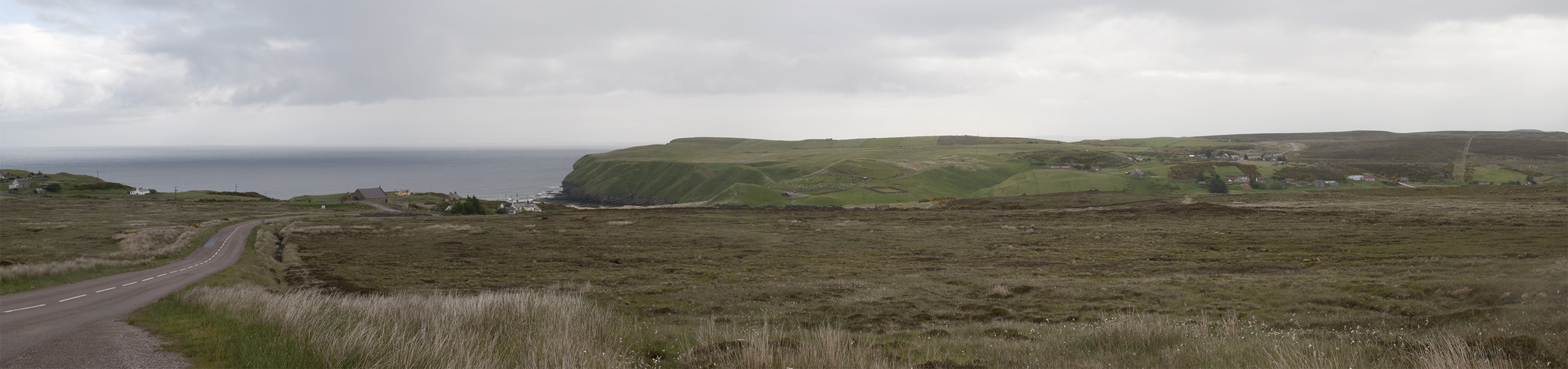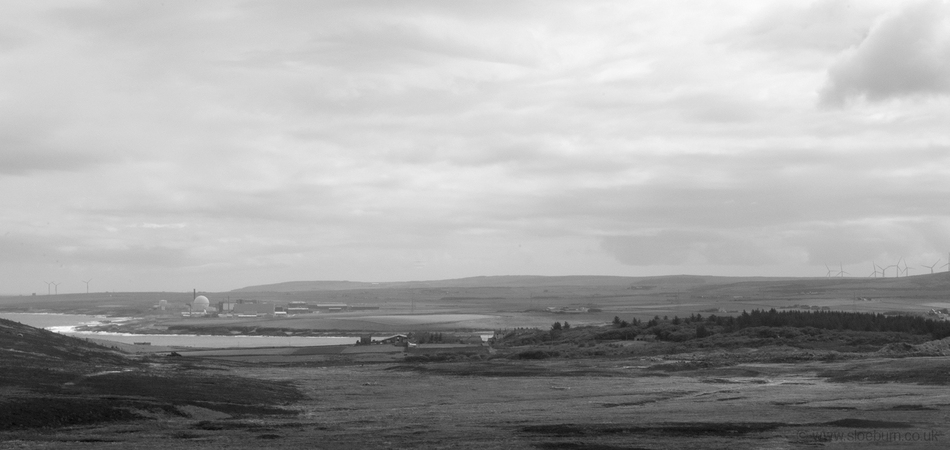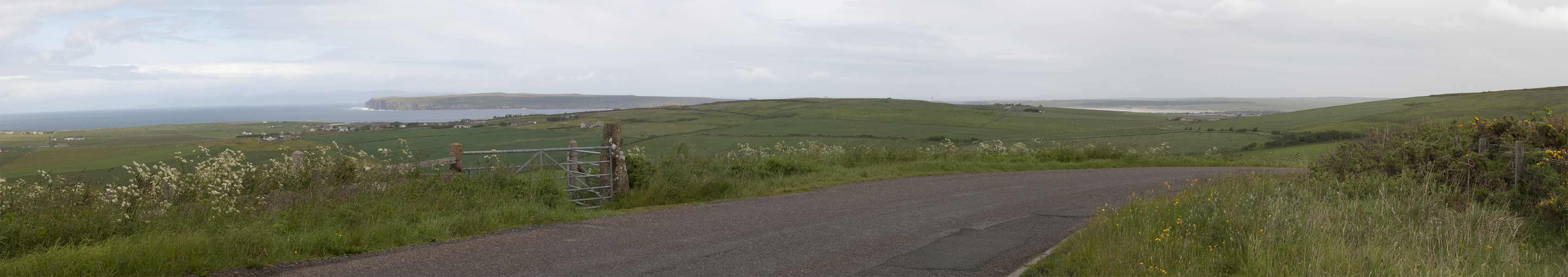 The route then goes inland a bit on minor roads to Thurso. I wasn't riding fast enough to beat an approaching dark cloud and got a bit of a soaking, so stopped in a bakery/cafe in town to dry and re-fuel. They forgot the tomato in my toastie but I think a complaint may have pushed them over the edge. The rain dried up a bit as I went on, and had my first views of Dunnet Head and Orkney from a hill outside Thurso.