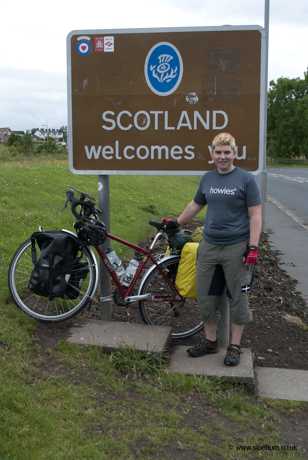 I stopped to take a photo of my bike with the sign marking the border (which is the River Sark) and had just got my camera out when another cyclist showed up and offered to take one with me in. I took a couple of him too and sent them when I got back. He was doing a supported LEJOG, his wife and son were packing up the tent back at their campsite. He was headed a different way, to Dumfries and Cumnock, while I took route 74 towards Lockerbie.