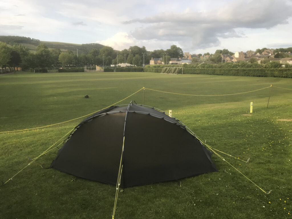 Earlier I had enjoyed seeing martins, swallows and swifts, but now the fast flittering things were bats. What looked like a badger family crossed the road in front of me. Happily McDonads was still open when I finally got back to Galashiels. I was very glad I had the car here, plus a head torch to load the trike. As well as leaving my water in the car, I had also forgotten to bring any shower gel. I’ve stayed in enough campsites to hope there would be a random bottle that someone had left behind, but the Melrose Gibson site facilities are very clean and tidy so there was nothing lying around. Wearing only my cycling shorts I used the dispenser by the handwash sinks to coat myself in soap, and then rinsed it off, which was surprisingly effective.