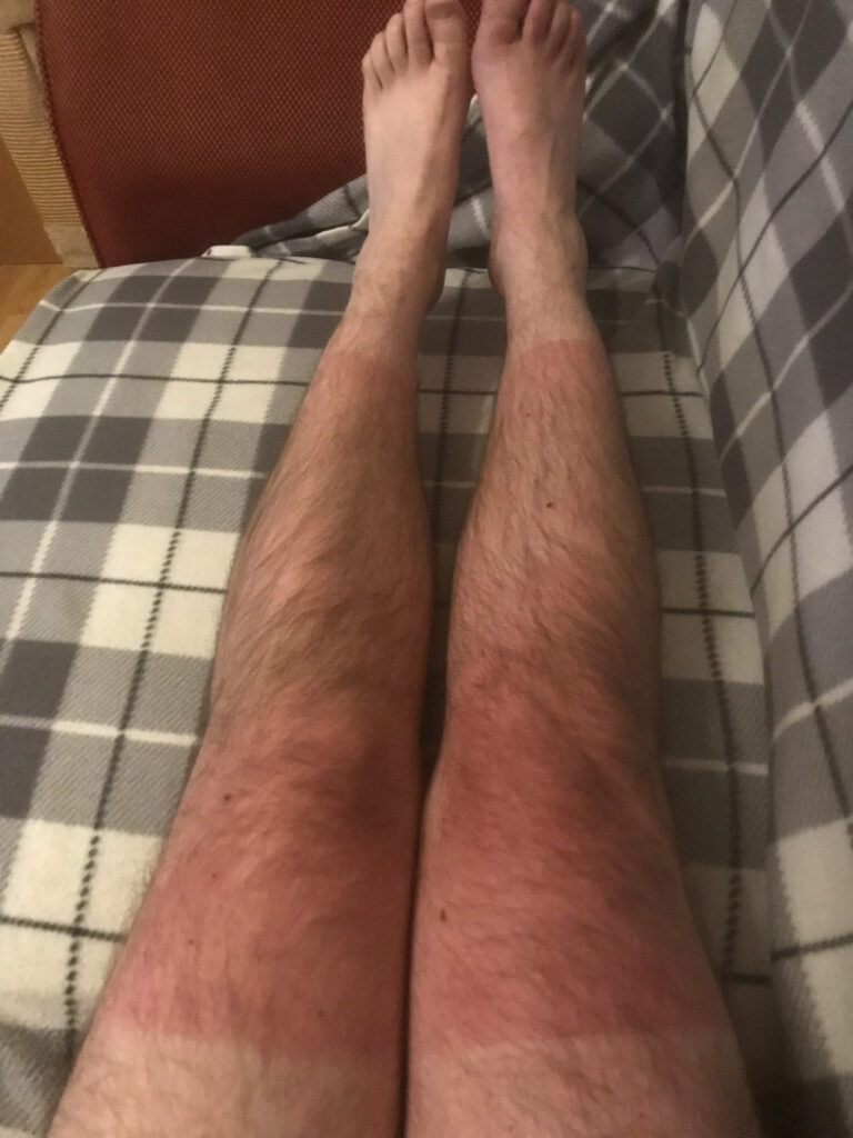 Next morning I found a nice place open for breakfast in Melrose, then drove home via my parents south of Moffat who provided yet more sustenance. Despite it raining for a good part of the day I managed to catch some sun on my legs.