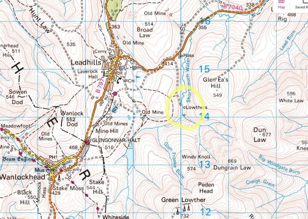 The wonderfully named Green Hill Stairs is a road between the Devil’s Beeftub and the M74. I had expected this to be an awful climb but actually it was fine both ways, just a long slow slog. Once past the bit of NCN 7 on the old service road the route took the B7040 to Leadhills and Wanlockhead. I think I’d only come here from the west road before so this was new. Of particular interest was what looked like a little church by Shortcleuch Water – I’ll have to pay another visit to find out. The cafe in Wanlockhead was a bit dispiriting as it is down at the bottom of a steep hill. The was an ultra run on at the same time, so I saw lots of bedraggled people heading in to the outdoor centre. As I was due to take part in something similar in the Cotswolds a week later this did not fill me with optimism.