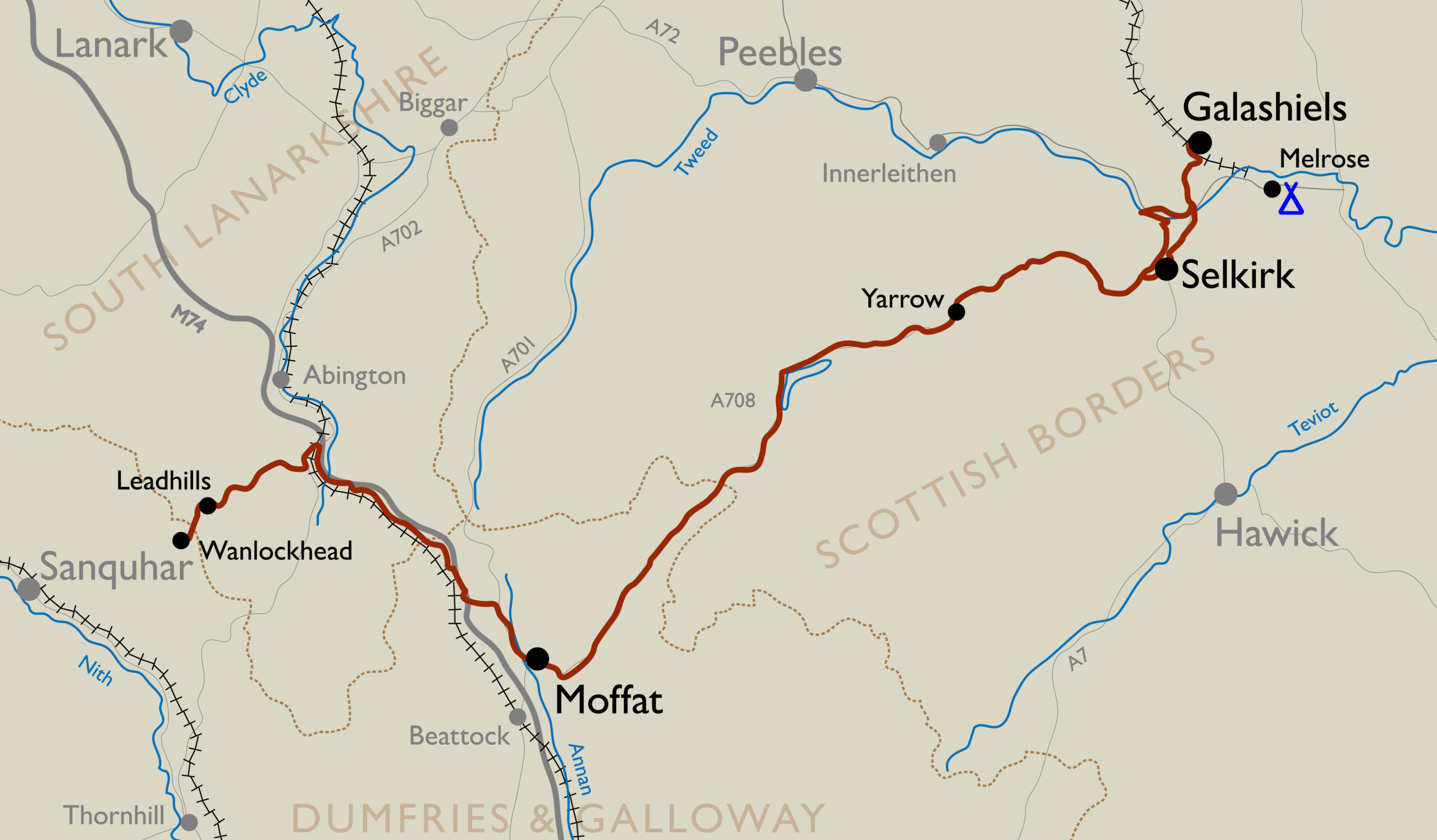 It was wet. No avoiding that. For the most part an ongoing light drizzle, but in Moffat for the first time it properly chucked it down. The usual control cafe, the Rumblin’ Tum, wasn’t taking any more customers as they were very busy and understaffed, so I went a few doors up the high street to the next one. They were strangely quiet – possibly because they are cash only. I thought about turning around here and heading back to Galashiels, but there was a little demon on my shoulder telling me I was supposed to be being audacious, which made me keep going.