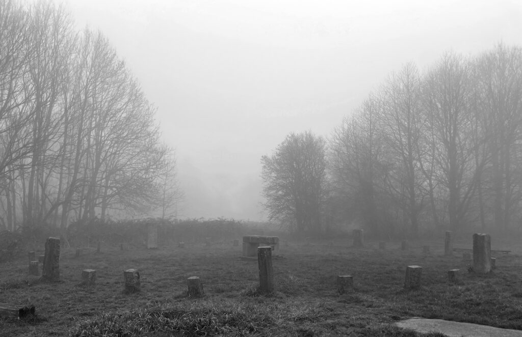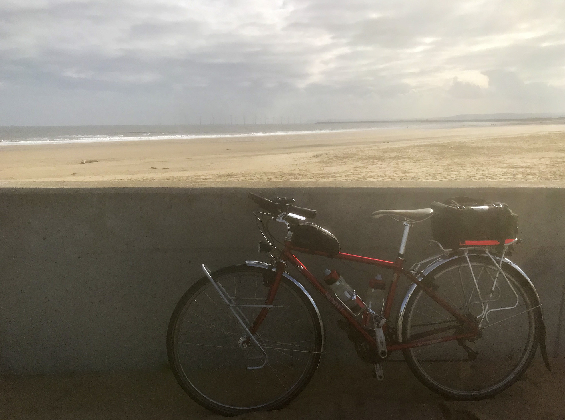 I was now on quiet roads through small villages, still following the river, although it was out of sight in the combination of mist and flat fields, with built-up banks being the only hint of its existence. The thick mist continued so I was rather damp. I tend to wear clear safety glasses when riding as I find my eyes get irritated on long rides (and they keep nature out), but it took me a while to realise that the reason I couldn’t see that well was that they were collecting water droplets and needed frequent wiping. Electricity pylons loomed out of and retreated back into the ground level clouds as I passed.