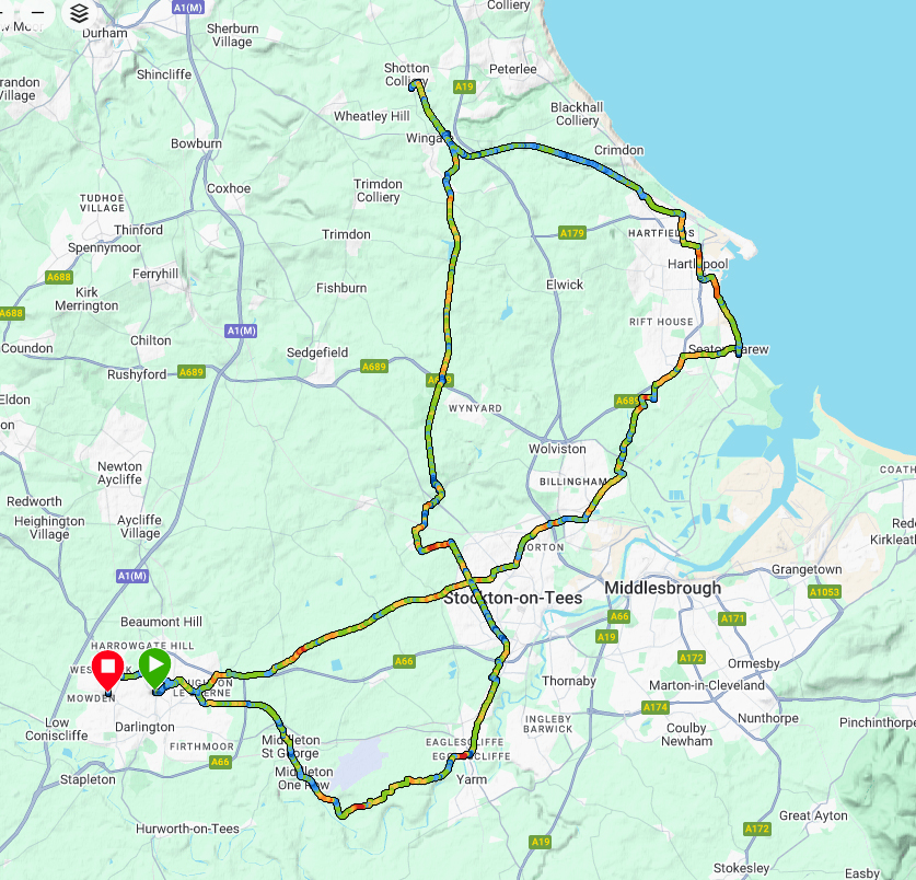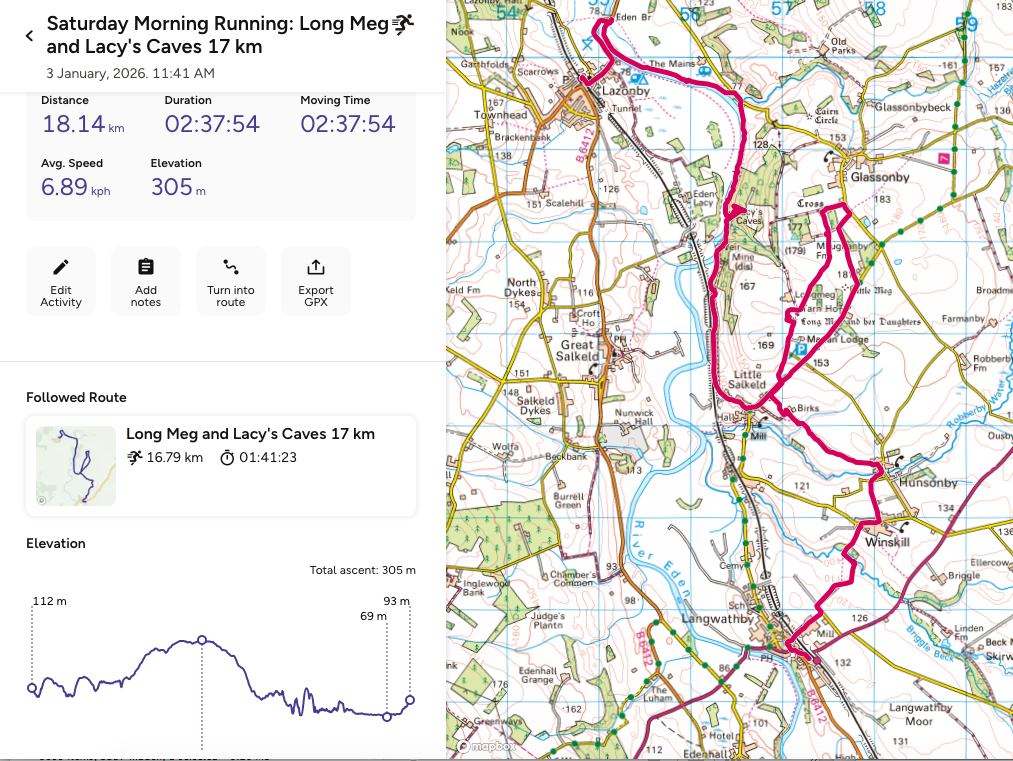 OS maps: 109 km, 240 m climbed, 6 hrs 22 mins; or Garmin: 105 km, 193 m climbed, 6 hrs 20 mins