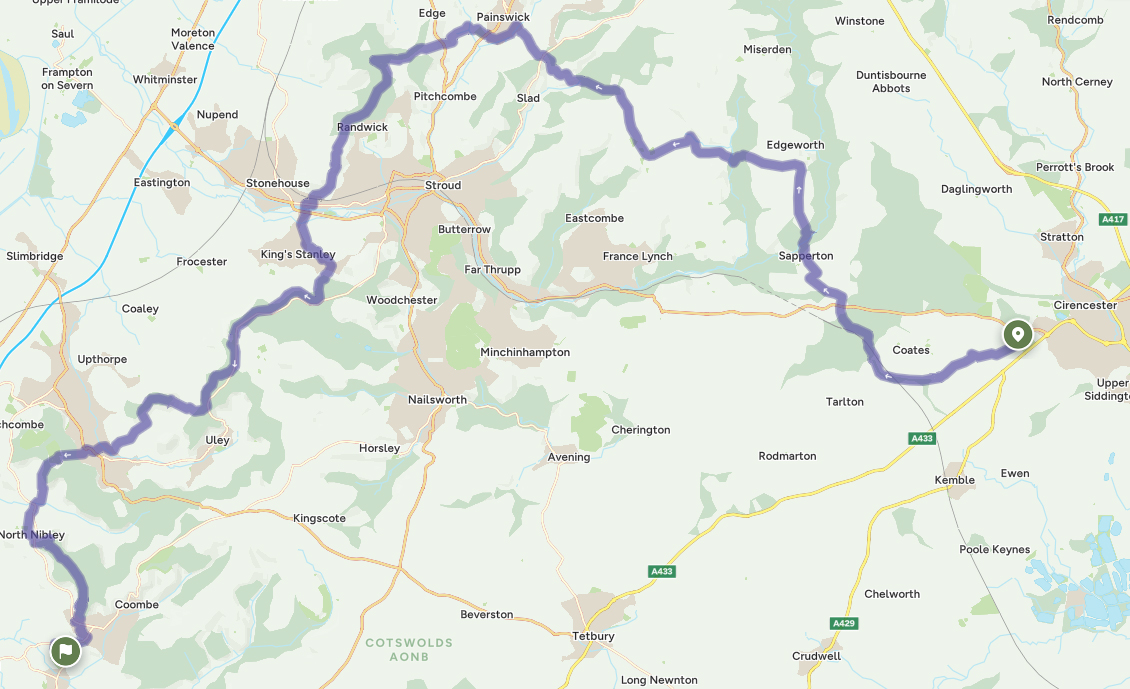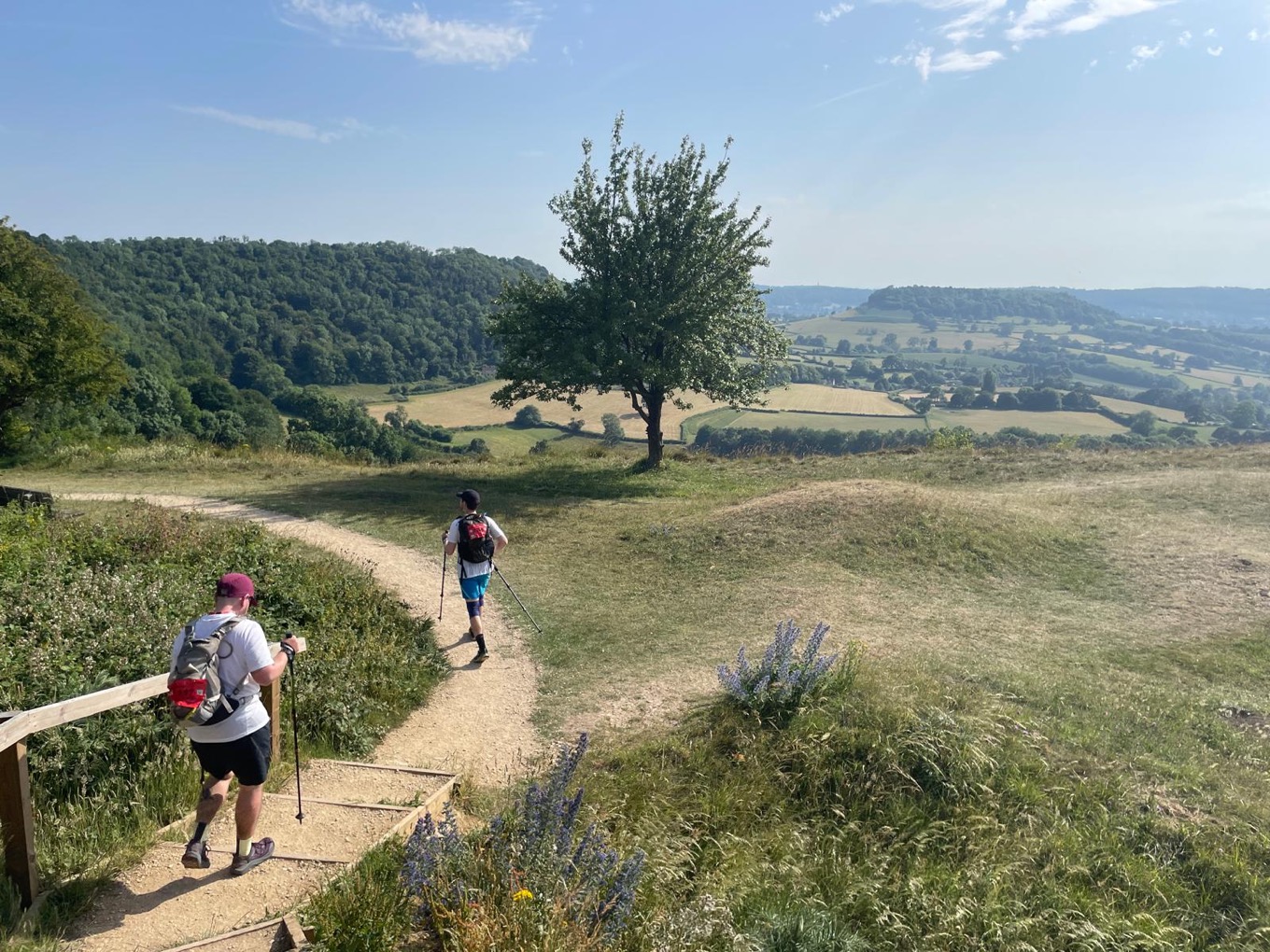 The next leg, to Coaley Peak was ok, but we were slowing. On to Wotton was a real trial, we were struggling with nausea and dizziness. The tip from the organisers was to drink water at every km marker, but given the heat we were most likely still dehydrated. We couldn’t take on any food at Wotton and after much deliberation we decided that going back out in the cold and dark was not a good idea, and retired. That turned out to be a whole other adventure, with a coach driven by someone who had clearly never seen it before and couldn’t get above 2nd gear. Finally we got back to the Cirencester start where rescuer Chris had been waiting for quite some time to drive us back to Oxford.