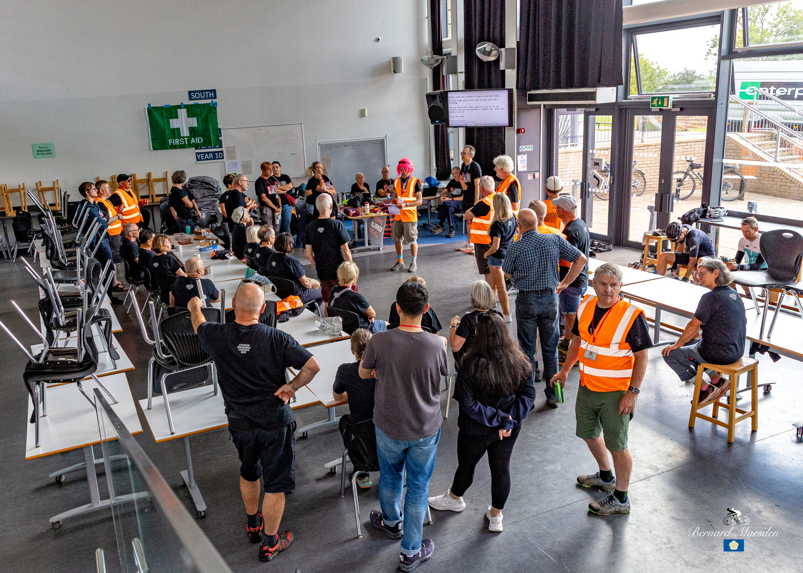 There are many accounts of the 2025 edition of London Edinburgh London, to the extent that I may not have much to add. It became clear that there was no way I could attempt to ride it, and when Peter asked if I would volunteer again I found it hard to say no. After previous editions at Barnard Castle we ‘moved house’ to Richmond, in particular their school. Quite a contrast, with this being a modern airy building.